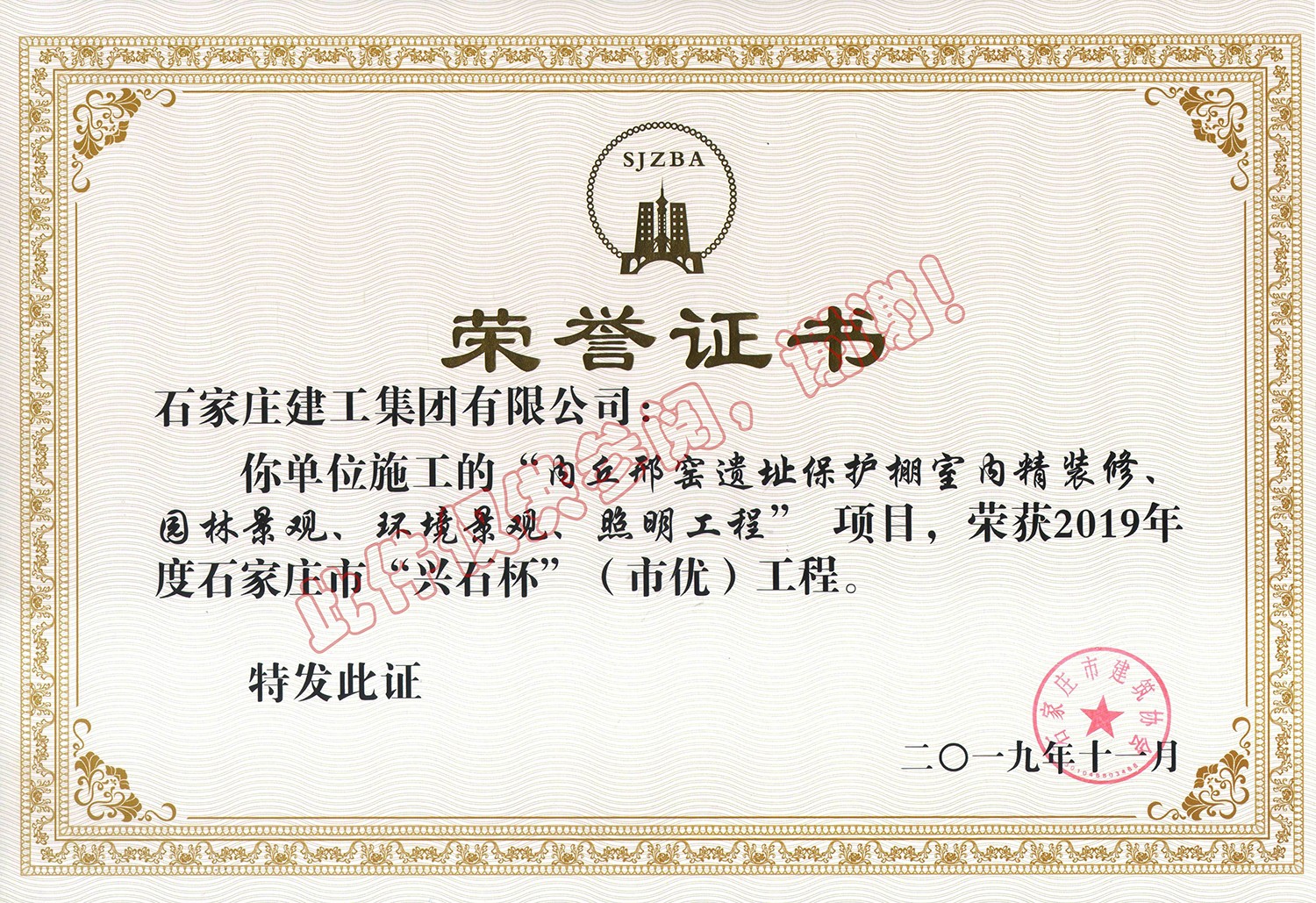 公司榮獲“2024年度石家莊市建筑業先進企業”